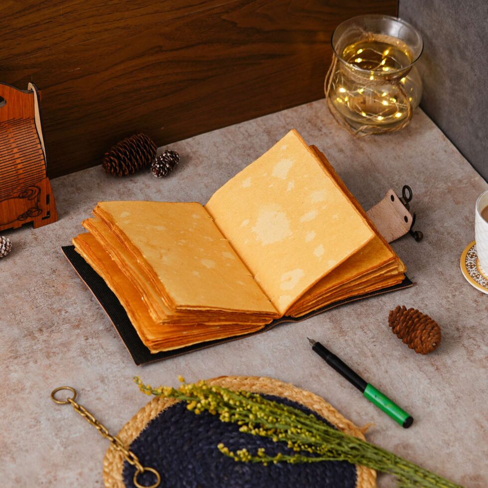 Vintage handmade leather journal. Crafted with genuine leather, it radiates authenticity and charm, perfect for those who appreciate classic craftsmanship. The premium antique lock closure adds a touch of elegance and security, ensuring your thoughts and memories are safeguarded within its pages. Inside, you’ll discover 200 brown handmade pages, providing ample space for your musings, sketches, and stories to unfold. Whether it’s for journaling, sketching, or planning, this versatile journal is a timeless companion for your creative endeavors. Treat yourself or a loved one to this exquisite piece, a celebration of tradition and creativity