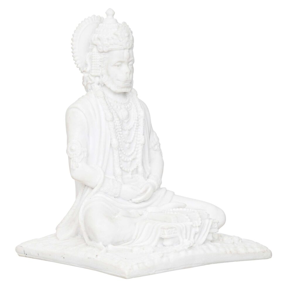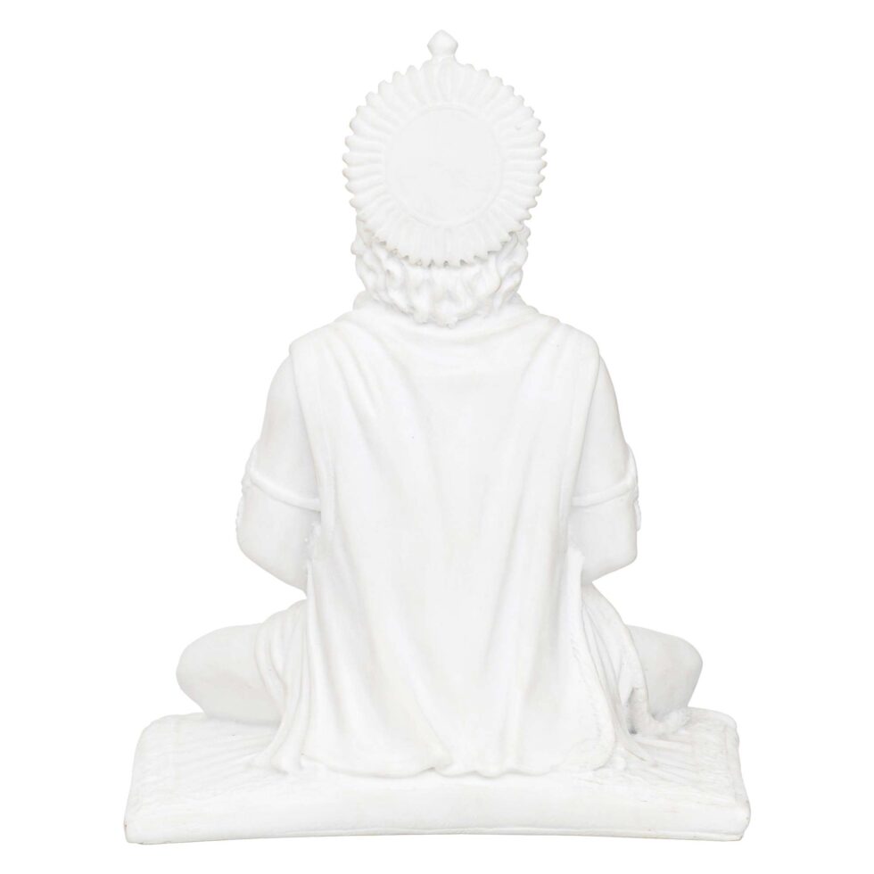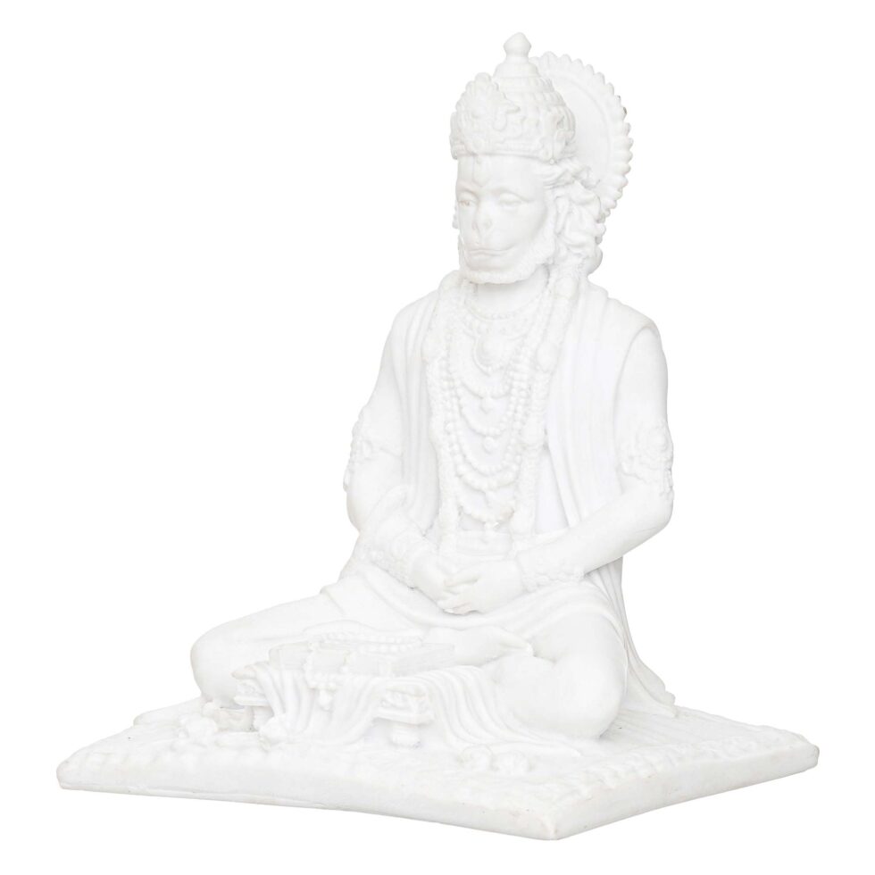 White Marble Lord Hanuman Sitting Statue with gada & Reading Book Decorative Showpiece